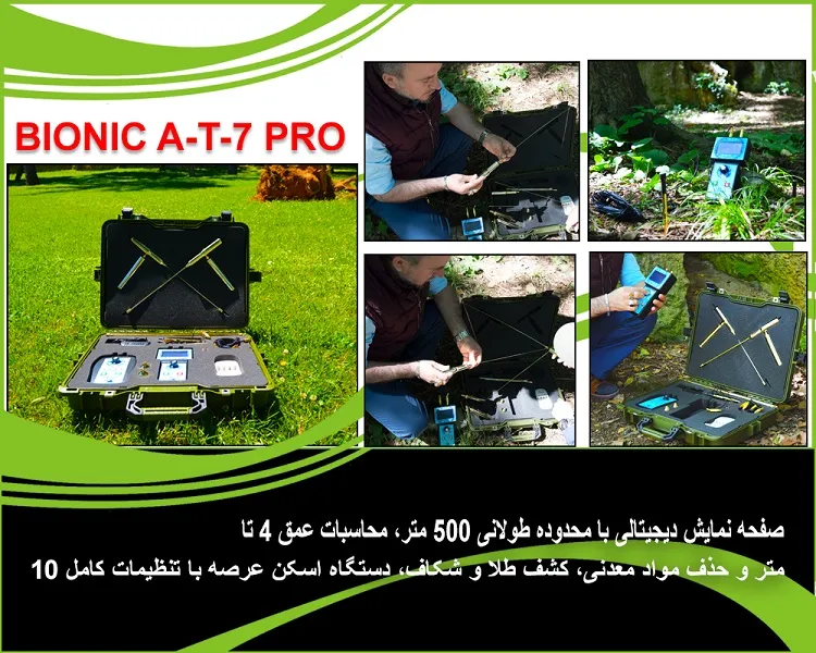 Bionic A-T-7 Pro یک فلزیاب مدرن و پیشرفته است که توسط مهندسان خبره طراحی و تولید شده است. این دستگاه مخصوص افرادی است که به دنبال گنج، طلا، نقره و فلزات ارزشمند در عمقهای بالا هستند.